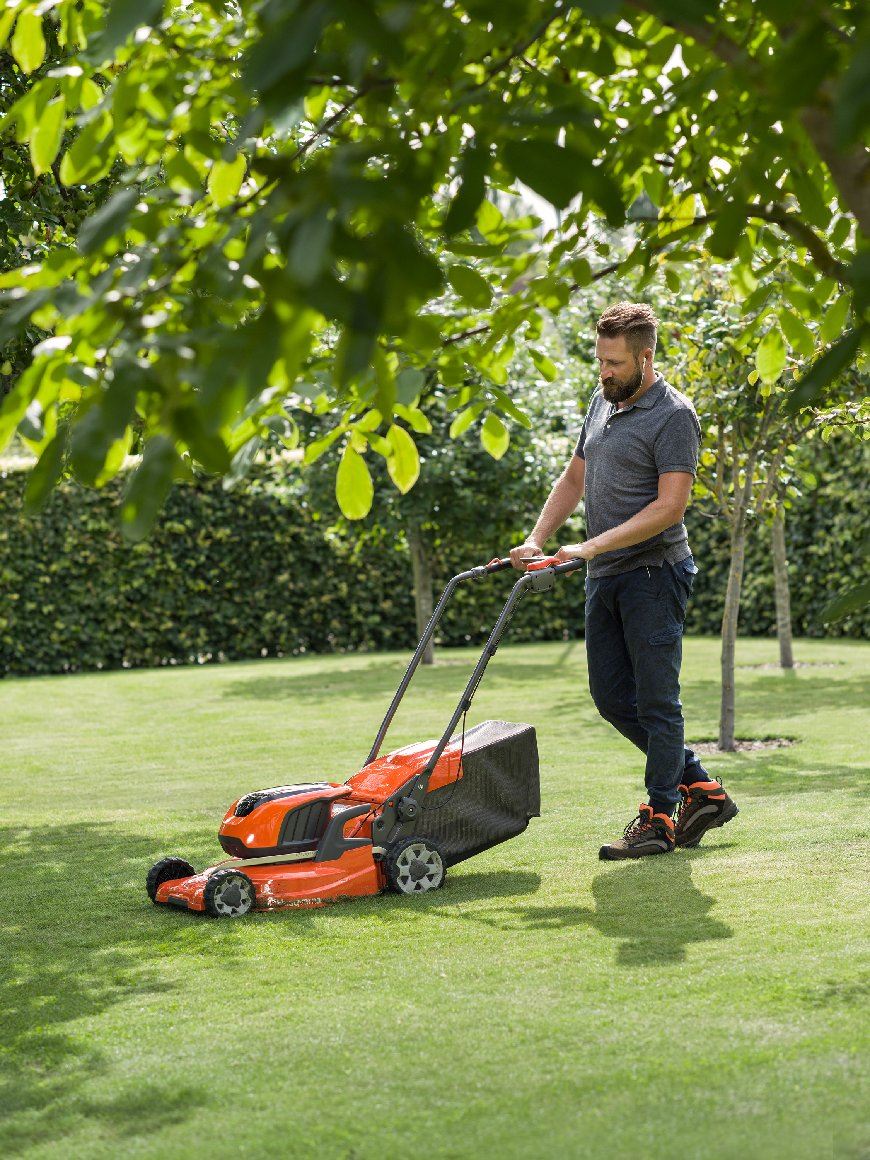 Dankzij de inklapbare bedieningsboom kan de grasmaaier worden opgeslagen of getransporteerd om ruimte te besparen.