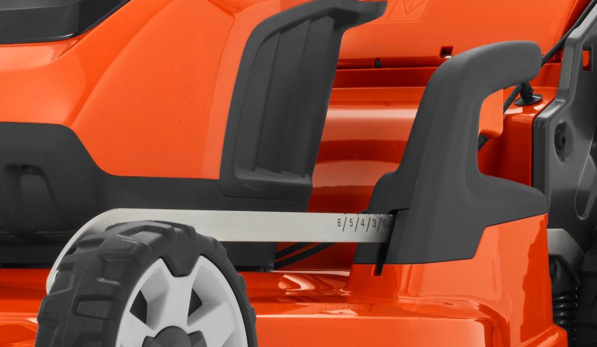Dankzij de centrale maaihoogte-instelling kan de maaihoogte eenvoudig worden aangepast met slechts één handgreep. |