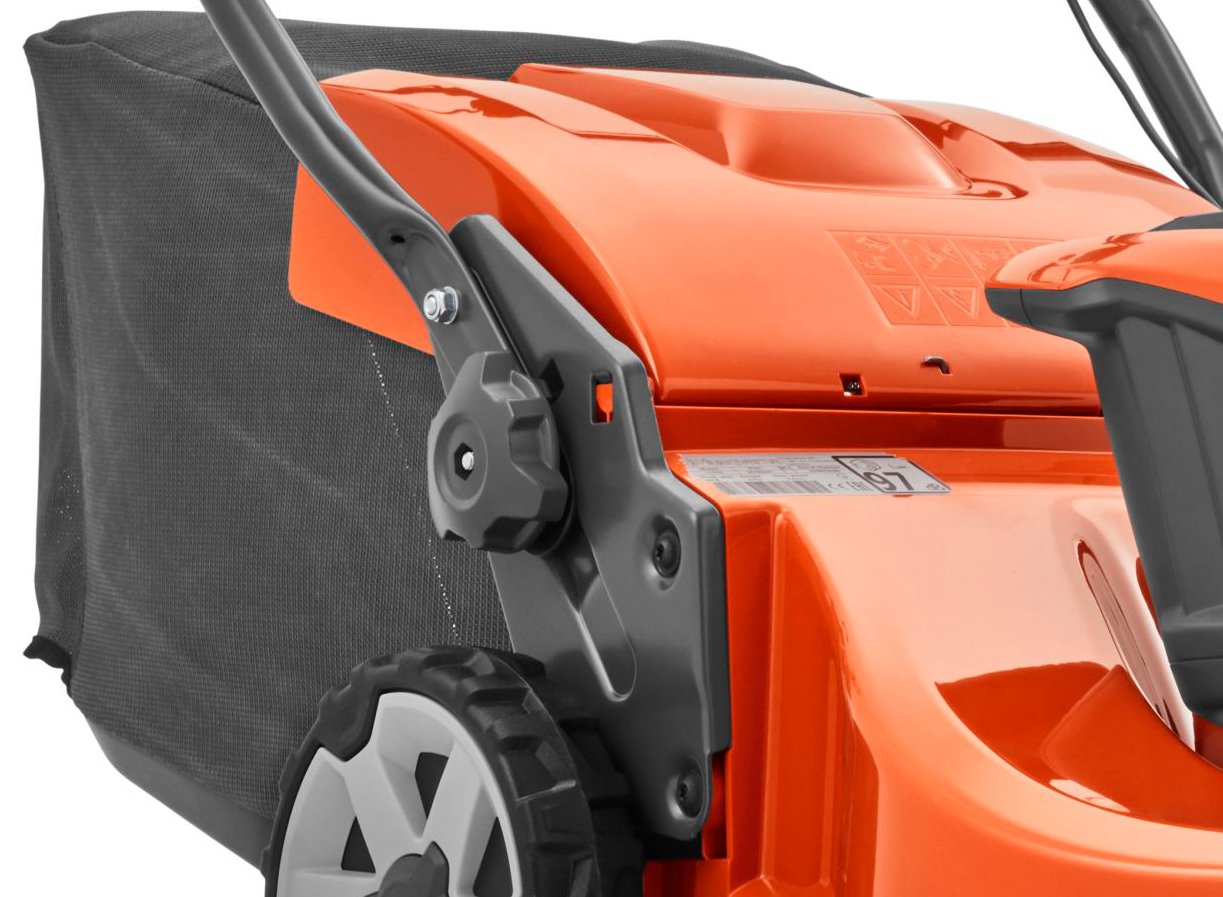 Dankzij de centrale maaihoogte-instelling kan de maaihoogte eenvoudig worden aangepast met slechts één handgreep. |